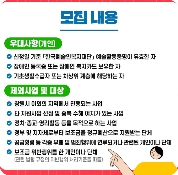 - 단체 : 구성원의 50% 이상이 창원시 거주 청년예술인 단체