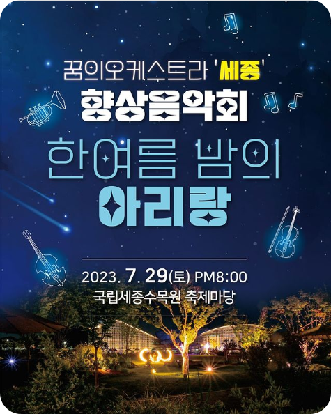 공연 당일 국립세종수목원 입장권을 소지한 시민 누구나 관람 가능하며,야간 개장 입장권으로도 방문 쌉가능