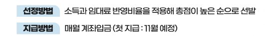 ㅁ선정방법 : 소득과 임대료 반영비율을 적용해 총점이 높은 순으로 선발