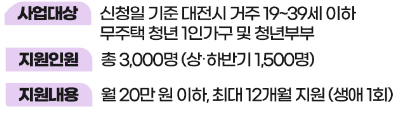 ㅁ사업대상: 신청일 기준 대전시 거주 19~39세 이하 무주택 청년 1인가구 및 청년부부