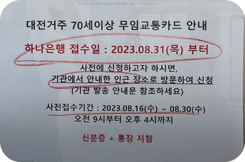 λ§ 70μΈ μ΄μ λ²μ€λΉ 무λ£νλ₯Ό μν΄ 16μΌλΆν° μ΄λ₯΄μ 무μκ΅ν΅μΉ΄λ μ μ²μ μ μν©λλ€.