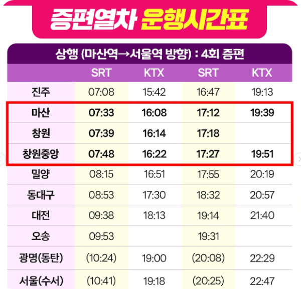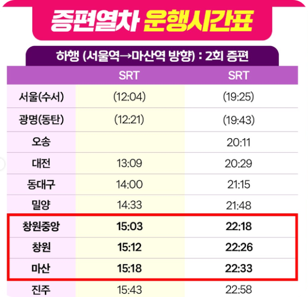 📌 증편 열차 운행 시간표를 확인해주세요!