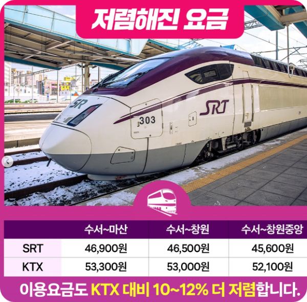 - 수서~창원 46,500원 (KTX 53,000원)