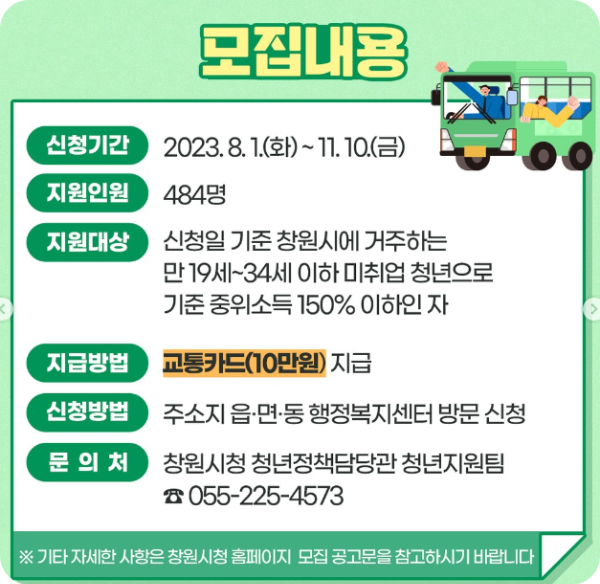 🚌 지원대상 : 미취업 청년으로 기준 중위소득 150% 이하인 자