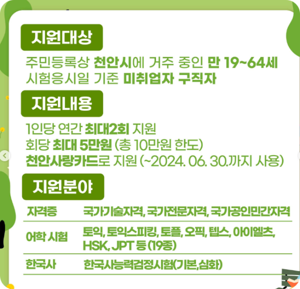 #천안시응시료지원 #응시료 #응시료지원